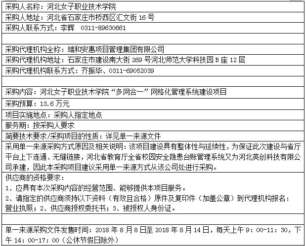 項目名稱:河北女子職業技術學院“多網合一”網格化管理系統建設項目
