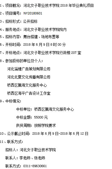 河北女子職業(yè)技術(shù)學(xué)院2018年畢業(yè)典禮項目中標公告
