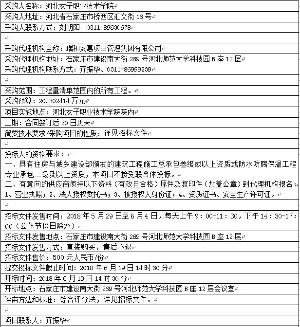 項目名稱:河北女子職業技術學院2、3、4號學生公寓及行政樓屋面防水工程