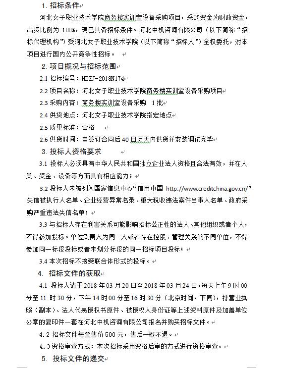 河北女子職業技術學院商務樓實訓室設備采購項目招標公告