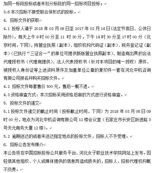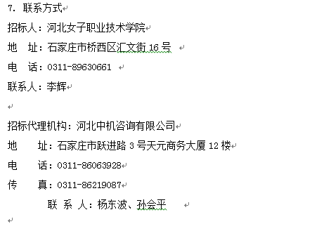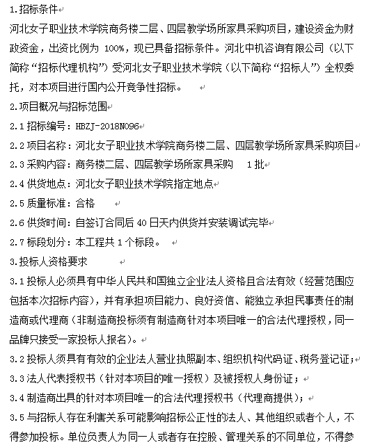 河北女子職業技術學院商務樓二層、四層教學場所家具采購項目