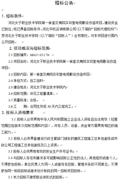 河北女子職業(yè)技術(shù)學(xué)院電纜敷設(shè)改造招標公告