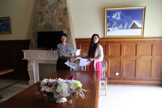簽署協議前,河北女子職業技術學院蓋春瑞院長、現代服務系主任秦秀紅、河北華峰科技有限公司張秀花總經理、小二臺鎮孫萬軍書記、武占文鎮長、塞那都旅游開發有限公司張志剛總經理、林改紅經理就各自單位的實際情況、合作共建內容進行了深入交流。