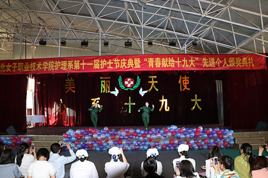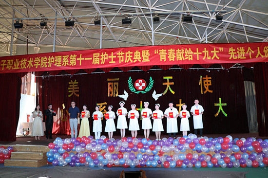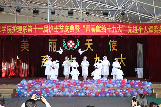 2018年5月8日,護理系舉行第十一屆護士節慶典暨“青春獻給十九大”護理系紅色主題教育活動先進個人頒獎典禮。護理系全體教師以及2016、2017級全體學生參加了此次活動。