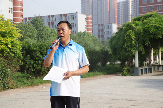迎著朝陽,伴隨著雄壯的國歌聲,鮮艷的五星紅旗冉冉升起,在場的全體師生向國旗行注目禮,深懷對祖國無限的熱愛和崇高的敬意。