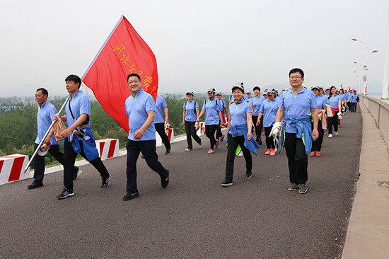 為深入貫徹落實黨的十九大精神和《全民健身計劃(2016-2020年)》,4月26日--27日,由河北省委省直工委主辦的“奮進新時代?健康伴我行”2018年省直干部職工健步走展示活動在石家莊鹿泉區黃壁莊水庫大壩舉行。4月27日上午,學院黨委書記竇新順、副院長(工會主席)董海鷹、紀委書記趙志華、教務處處長趙繼忠、學生處處長胡會來帶領學院工會會員共86人參加了本次活動。