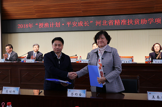 高繼輝秘書長與蓋春瑞院長簽署“授漁計(jì)劃?平安成長”項(xiàng)目協(xié)議
