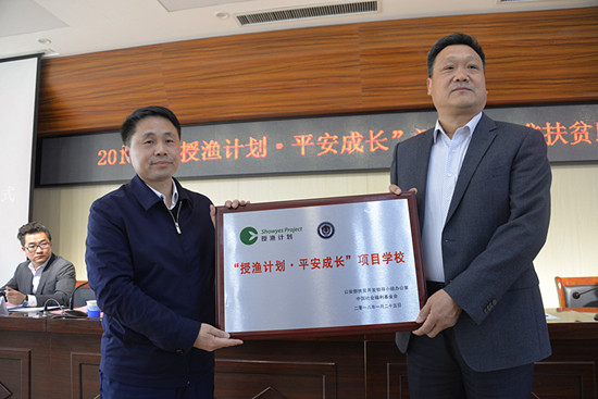 隨后,高繼輝秘書長為學(xué)院授予“‘授漁計(jì)劃?平安成長’項(xiàng)目學(xué)校”牌匾。