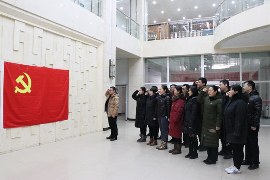 1月25日下午,我院在圖書館一樓大廳舉行預備黨員入黨宣誓大會。2017年度發展的7名教工預備黨員、部分正式黨員代表參加了此次宣誓大會。
