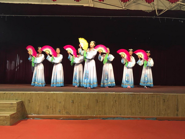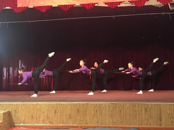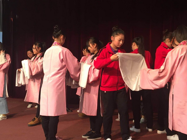 抖水袖、耍花槍各種表演精彩紛呈,同學們興奮的走上舞臺參與互動,學習評劇的唱腔和身段。