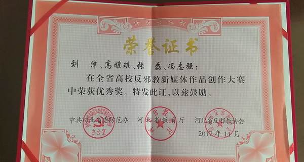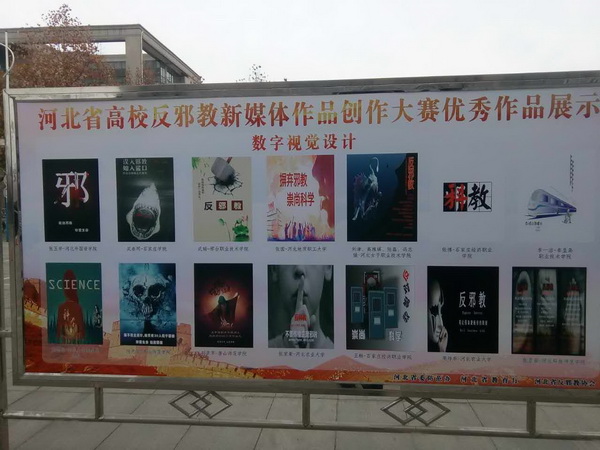 2017年11月29日上午,中共河北省委防范辦、河北省教育廳、河北省反邪教協會在河北科技大學聯合召開全省高校反邪教宣傳工作會。我院反邪教協會會長、黨委副書記柳韶軍代表學校參加了會議。大會對今年5月份舉辦的河北省高校反邪教新媒體創作大賽作品進行了展覽和表彰。