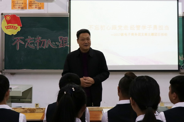竇書記在觀摩各系團(tuán)總支的精品團(tuán)日活動期間,分別與各班同學(xué)進(jìn)行了親切的交談,并對同學(xué)們寄予了深切期望。竇書記結(jié)合自身的教育經(jīng)歷,向同學(xué)們闡述了學(xué)院“德育為先、育人為本”的教育理念,鼓勵同學(xué)們努力做好以下四點:一要養(yǎng)成良好的生活習(xí)慣,加強體育運動,增強身體素質(zhì);二要提高綜合素質(zhì),樹立有愛心、善合作、敢創(chuàng)新的進(jìn)取精神;三要提高運用信息化的能力,善于運用新媒體工作和學(xué)習(xí);四要培養(yǎng)吃苦耐勞的精神,將淑女風(fēng)范和中華女性傳統(tǒng)美德相結(jié)合,爭做新時代“十度優(yōu)品”女性。竇書記希望全體同學(xué)充分利用大學(xué)三年的寶貴時間,熟練掌握專業(yè)技能,自覺提高綜合素質(zhì),把“學(xué)懂、弄通、做實”貫穿于黨的十九大學(xué)習(xí)宣傳活動,把個人發(fā)展同國家命運結(jié)合起來,努力成為“有理想、有本領(lǐng)、有擔(dān)當(dāng)”社會主義接班人。