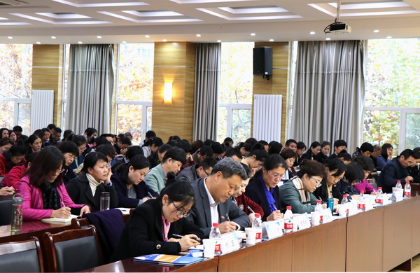 為進一步學習宣傳貫徹黨的十九大精神,根據全國婦聯統一部署,全國婦聯副主席、書記處書記、黨組成員譚琳帶隊赴我省向婦聯干部和農村社區婦女群眾宣傳宣講黨的十九大精神。11月8日下午,學習貫徹黨的十九大精神宣講報告會在我院新思維交流中心舉行,譚琳副主席蒞臨我院作宣講報告。全國婦聯權益部部長高莎薇、權益部信訪處處長郭曄、權益部處長于曉瓊、領導同志秘書何蓉,河北省婦聯主席、黨組書記賈玉英、副主席王冬梅,學院黨委書記竇新順、院長蓋春瑞出席報告會;省、市婦聯機關干部、學院師生代表共200余人聆聽了報告。會議由賈玉英主席主持。