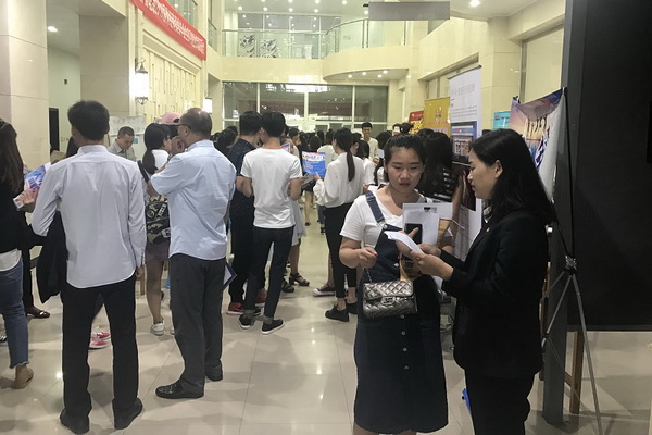 實習動員會結束后,經濟管理系在圖書館一樓大廳組織舉辦了2018屆財經商貿類畢業生實習就業專場雙選會。來自北京嘉瑞財務咨詢有限公司、河北夢航企業管理服務有限公司、河北源達證券投資股份有限公司、河北慧聰電子商務有限公司等40余家用人單位為學生提供了近300個工作崗位,學生們手持精心準備的自薦書和簡歷,積極與招聘人員交流。用人單位對我院財經商貿學生扎實的專業基礎和良好的溝通能力給予了充分肯定,70%以上的學生與用人單位達成了初步實習就業意向。