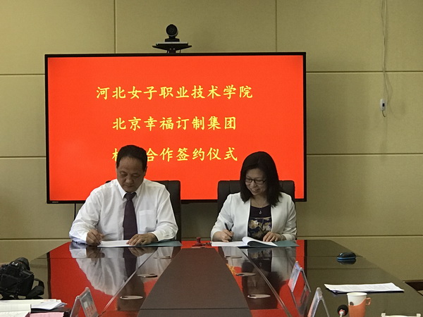 儀式上,與會代表首先觀看了學院宣傳片,胡會來處長向介方紹了我院辦學定位、專業(yè)設置及發(fā)展情況;莊會友董事長對學院的發(fā)展理念和辦學成績給予高度贊賞,并介紹了幸福定制集團的發(fā)展概況,希望通過精誠合作、校企雙方攜手共鑄輝煌。隨后,莊會友董事長、李桂榮主任分別代表校企雙方簽約。