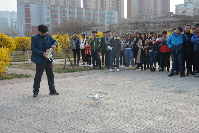 會上,武渭峰先生首先向與會人員闡述了無人機行業的發展、就業前景以及航模大賽等方面的知識,講述了高校無人機飛行隊的成功案例;秦秀紅主任對河北華峰科技公司助力學院發展表示熱烈歡迎,并鼓勵同學們在學好專業課程的基礎上拓展興趣,為自己將來立足社會增加砝碼;同學們就無人機領域相關知識與專家進行了交流。動員會后,企業專家們帶領師生到學院廣場進行了試飛,大家全方位體驗了無人機的飛行魅力。
