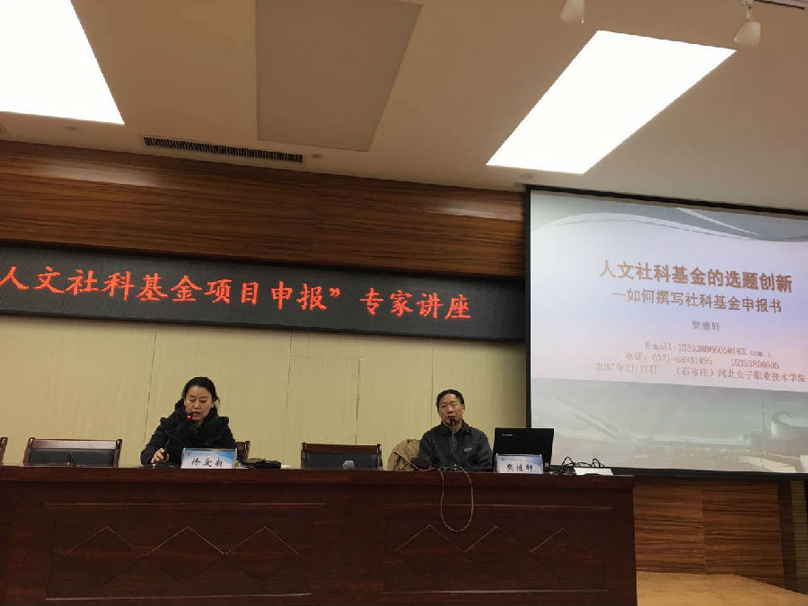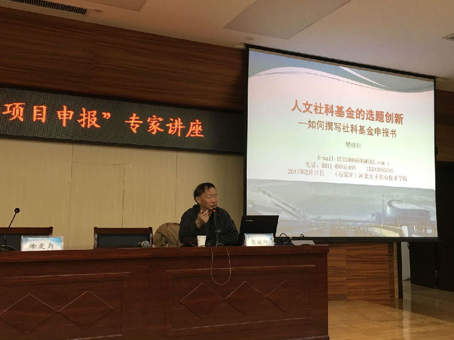 為提高學院教師教科研設計水平,有效提升課題申報質量, 2017年2月17日上午,我院邀請了黃河科技學院樊繼軒教授到校進行科研素養提升講座——《人文社科基金的選題創新——如何撰寫社科基金申報書》。我院教學副院長徐愛新主持會議,一百余位教師參加了本次講座。