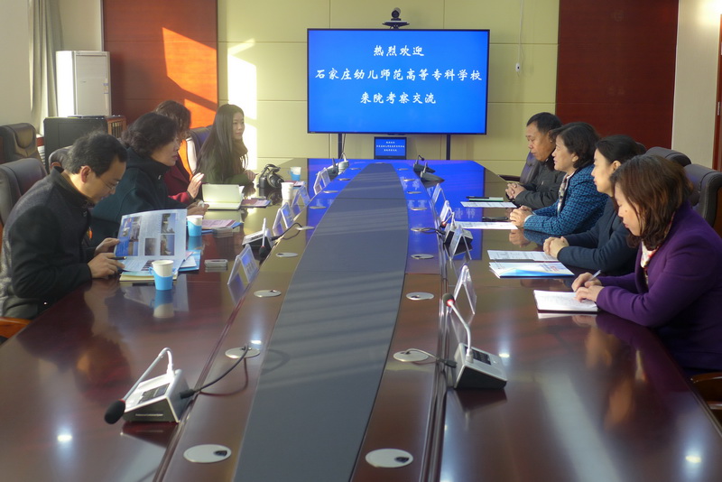 12月16日,石家莊幼兒師范高等專科學校校長張聰帶領招生與就業指導處副處長任朋輝、教務處干事胡耀崗、辦公室干事劉明陽一行四人到我院考察交流。院長蓋春瑞、副院長徐愛新、學生處處長胡會來、教務處副主任安月輝在我院行政樓201會議室與來訪人員進行了深入友好的座談。