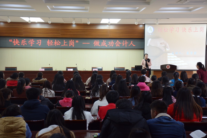 10月25日下午,我院經(jīng)濟(jì)管理系邀請(qǐng)河北夢(mèng)航財(cái)稅集團(tuán)董事長(zhǎng)、安達(dá)信會(huì)計(jì)公司總經(jīng)理扈景霞來(lái)校做了“快樂(lè)學(xué)習(xí)、輕松上崗——做成功會(huì)計(jì)人”專(zhuān)題講座。經(jīng)濟(jì)管理系主任李桂榮、副主任馬麗、全體輔導(dǎo)員和2015、2016級(jí)財(cái)會(huì)專(zhuān)業(yè)學(xué)生共同聆聽(tīng)了扈董事長(zhǎng)的精彩講座。