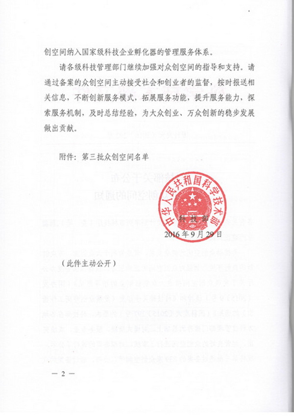 根據《國務院辦公廳關于發展眾創空間推進大眾創新創業的指導意見》(國辦發[2015]9號)精神和《科技部關于印發<發展眾創空間工作指引>的通知》(國科發火[2015]297號)的要求,科技部在各地方科技管理部門推薦的基礎上,對模式新穎、服務專業、成績突出、運營良好的眾創空間進行了審核、公示,并于近期正式公布了第三批通過備案的839家眾創空間,我院“毓秀”空間名列其中。至此,我院“毓秀”空間正式納入國家級眾創空間管理序列。