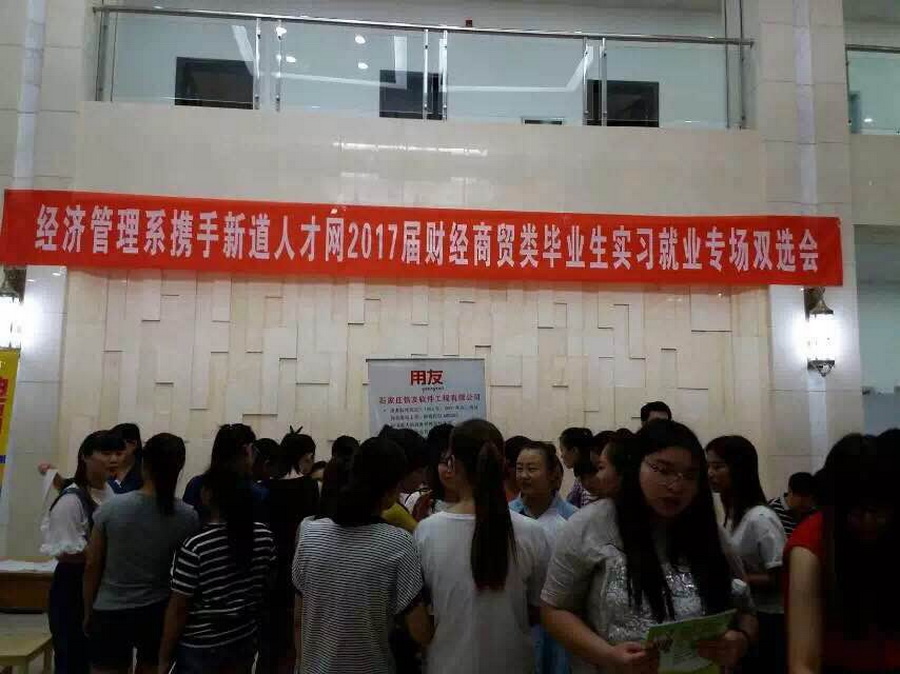 會后,經濟管理系攜手新道人才網為2017屆財經商貿類畢業生精心準備了實習就業專場招聘會,本次招聘會吸引了58家企業蒞臨現場,提供了近300個崗位,招聘現場學生們積極與用人單位交流,主動了解用人單位的情況和需求并投遞簡歷,下午企業還安排了面試環節。招聘會為學生實習就業和企業單位選人用人提供了很好的對接平臺,也為2017屆畢業生實習就業工作的順利開展奠定了良好的基礎。(信息來源:經濟管理系)