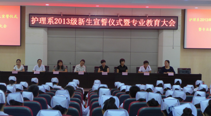 為了使新生對專業有更加深入的了解,更快適應大學生活,2013年9月17日下午護理系舉行新生宣誓儀式暨專業教育大會。出席會議的有護理系副主任秦秀紅、河北省三院原骨科護士長于鳳歌、中國人民解放軍467醫院原婦產科護士長徐艷萍老師、護理實訓中心馬曉卿老師、護理系骨干教師李賀芝老師及2013屆畢業生代表趙寧寧、實習生代表賈佳。會議由護理教研室主任梁冰鋒老師主持。