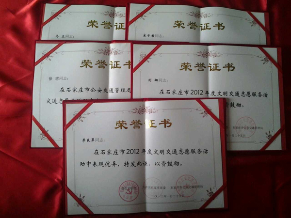 我系青年志愿者踏實(shí)肯干,無私奉獻(xiàn)的工作作風(fēng),贏得了主辦單位和群眾的一致贊揚(yáng)。徐郡、李良翠、宋子君、馬蘭、劉娜五位同學(xué)在石家莊市2012年文明交通志愿服務(wù)中表現(xiàn)優(yōu)異,獲得了表彰。我系獲得了2012年文明交通志愿服務(wù)獲得優(yōu)秀組織獎。