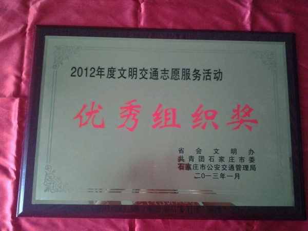 我系青年志愿者踏實肯干,無私奉獻的工作作風,贏得了主辦單位和群眾的一致贊揚。徐郡、李良翠、宋子君、馬蘭、劉娜五位同學在石家莊市2012年文明交通志愿服務中表現優異,獲得了表彰。我系獲得了2012年文明交通志愿服務獲得優秀組織獎。