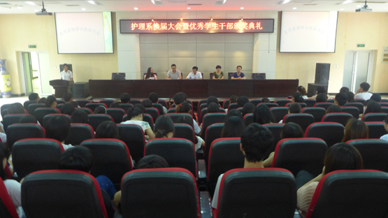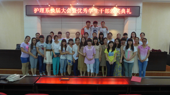 2013年5月21日下午四時,我院護理系在圖書館206報告廳隆重的舉行了團總支學生會學生干部換屆大會暨學生干部頒獎典禮。護理系李志主任、秦秀紅副主任、團支部書記肖雷老師、侯東方老師和各位導員,以及團總支學生會全體成員參加了此次會議。