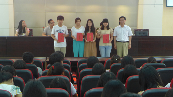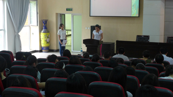 歡送并祝福2011級同學們的實習道路一切順利,也激情高昂的迎接新任學生干部的就職。然后,12級學生干部依次進行了就職報告,表達了對老師的感謝,同學的幫助,并表達了對今后工作的激情和責任。最后,李志主任做出了會議總結,通過講到“團結”、“合作”、“創新”、“發展”來總體概括了對護理系今后發展的方向和希望。