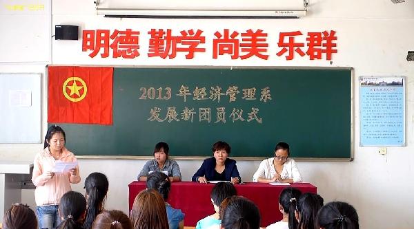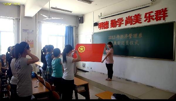 5月10日下午14:00,經濟管理系在綜合教學樓509教室舉辦了2013年新團員發展儀式。來自2012級5個團支部的14名學生光榮地加入了中國共產主義青年團。系團總支書記陳麗敏、輔導員郭書哲和全系54名團干部參加了儀式,儀式由團總支實踐部部長石佳佳同學主持。