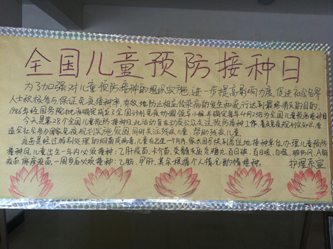 為大力宣傳擴(kuò)大國家免疫規(guī)劃知識(shí),讓在校大學(xué)生了解社會(huì)的預(yù)防接種活動(dòng),提高大學(xué)生預(yù)防接種知識(shí)知曉率,我院護(hù)理系志愿者服務(wù)部與2013年4月25日在小廣場舉行第27屆全國兒童預(yù)防接種日宣傳活動(dòng)。