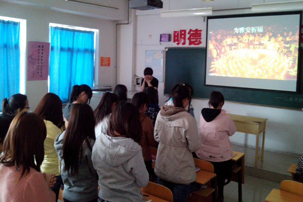 活動中,同學(xué)們觀看了雅安地震視頻和災(zāi)區(qū)軍民抗震救災(zāi)救援的場面,了解震后當(dāng)?shù)貙W(xué)校以及群眾受難后的場景,感受到了全國人民“眾志成城,抗震救災(zāi)”的堅定信念。隨后集體為災(zāi)區(qū)的同胞默哀,以表達對雅安災(zāi)區(qū)遇難同胞們的哀思、哀悼。最后,大家積極討論發(fā)言,談自己的感受,地震自救的知識以及對災(zāi)區(qū)同胞們奉獻愛心和祈福的方式。