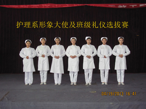 本次活動分為團體競賽和個人競賽(即“形象大使”)兩大板塊。首先開始展示的是“形象大使”的候選者,10名候選人通過護士禮儀展示、三分鐘的演講等環節充分了護理系學生良好的綜合素養。其次是以班級為單位進行的團體競賽,一、二、四班的禮儀展示優雅、從容、美麗;三班的護士小品詼諧有趣、寓意深刻、令人深思。護理系將在今年的5.12護士節上為形象大使的前三名舉辦隆重的頒獎典禮。