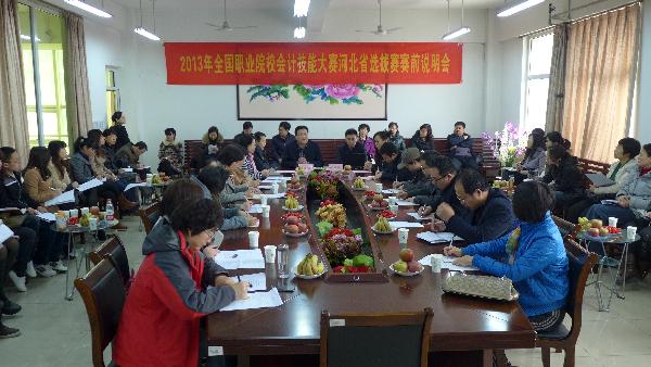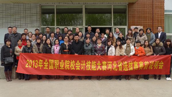2013年3月29日,經過周密籌備的全國職業院校會計技能大賽河北省選拔賽賽前說明會在我院實訓樓601會議室隆重召開,吹響了2013年度河北省會計技能大賽(高職組)的號角。學院竇新順院長、院黨委委員徐愛新主任、用友新道科技有限公司國賽命題組專家孫勝儒先生、用友新道科技有限公司河北分公司王力朋經理以及來自全省34所高職院校的56名帶隊教師參加了賽前說明會。會議由經濟管理系主任李桂榮主持。