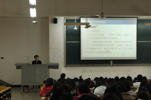 春季是萬物復蘇的季節,也是呼吸道傳染疾病的高發季節。為做好我院學生呼吸道傳染病預防,3月26日下午,在107階梯教室,我院特邀石家莊市疾控中心郭付愛主任講解了春季呼吸道傳染病的防治知識,我院350名大學生聆聽了講座。