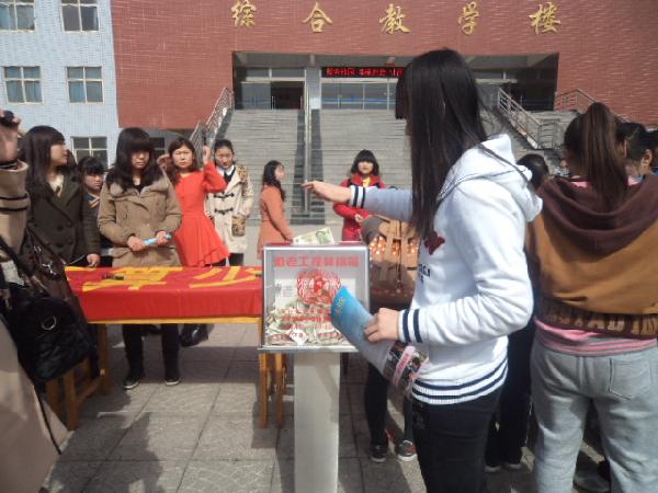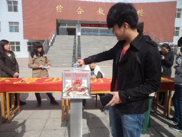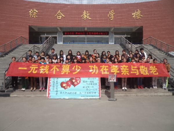 2013年3月7號(hào),在這個(gè)風(fēng)和日麗、陽光明媚的日子里,由經(jīng)濟(jì)管理系團(tuán)總支志愿者部組織的“一元錢不算少、功在孝親與敬老”助老募捐活動(dòng)和倡議簽名活動(dòng)在綜合教學(xué)樓前廣場(chǎng)拉開了帷幕。
