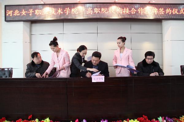 學院黨委書記王靜在簽約儀式上致賀詞,她首先向各位嘉賓介紹了學院近幾年的發展經歷和整體狀況。她進一步指出,現代職業教育體系建設已經上升為國家戰略,列入了國家專項規劃。教育部副部長魯昕同志在“第二期高職院校領導干部專題研修班”的講話中強調:現代職業教育體系建設的切入點是中高職協調發展,探索中高職銜接已經成為推進我國高職教育科學發展的重要途徑,成為我國創新人才培養模式、造就更多更好社會人才的重要平臺。2012年11月召開的黨的十八大為我國的社會經濟發展指明了方向、目標和任務,胡錦濤總書記在報告中也指出,我國將全面進入建成小康社會和加快推進現代化進程的新的發展階段,從建設到建成,一字之差卻是質的飛躍。在這樣背景下,選擇正確的職業教育發展戰略,使職業教育成為經濟增長和社會穩定的有成效、有效率的推動力,具有十分重要的意義。因此,加強中等職業教育和高等職業教育的銜接,大力發展高等職業教育,不僅是新形勢下發展職業教育事業的需要,也是當代社會經濟發展對人才規格的必然要求。今后,我院要進一步貫徹落實《國家中長期教育改革和發展規劃綱要(2010-2020年)》,深化教育教學改革,重點推進中高職培養目標、專業設置、課程體系與教材、教學資源、教學過程、招生制度、評價機制、教師培養、行業指導、集團化辦學等十個方面的銜接,為中職院校的相關專業建設提供大力支援和幫助。