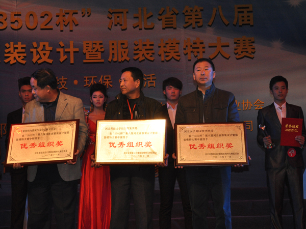 11月9日至11日,吳紀偉主任帶隊赴邢臺參加“3502杯”2012年河北省服裝設計暨模特大賽,本次大賽由河北省紡織與服裝行業協會主辦、際華三五零二職業裝有限公司冠名,共有來自省內各服裝類院校、企業的160余人參加了本次比賽,徐超副主任和服裝設計專業王越老師分別擔任設計大賽和模特大賽評委。經過初賽、復賽、決賽三輪激烈的角逐,我專業參賽作品及選手表現出色,共有17名參賽師生代表在大賽中獲獎,我院還獲得本次大賽“優秀組織獎”。
