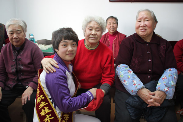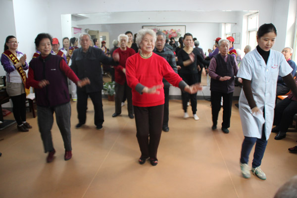 同學(xué)們的到來(lái)受到了付院長(zhǎng)和老人們的熱烈歡迎?;顒?dòng)中,同學(xué)們先到老人們房間看望了各位老爺爺、老奶奶,陪他們聊天,幫他們收拾屋子。隨后,志愿者們?yōu)槔先藗儷I(xiàn)上了精心準(zhǔn)備的節(jié)目,表演獨(dú)舞《詠荷》的同學(xué)舞姿優(yōu)美,輕盈曼妙;葫蘆絲演奏《月光下的鳳尾竹》音色輕柔細(xì)膩,圓潤(rùn)質(zhì)樸;豫劇《花木蘭》唱腔雅致俏麗,韻味十足……老人們聽得興致昂揚(yáng),為我們表演了他們活力十足的健身操《最炫民族風(fēng)》、《套馬桿》,并和志愿者們一起合唱了《夕陽(yáng)紅》,整個(gè)老年公寓充滿了歡聲笑語(yǔ)。兩個(gè)小時(shí)的時(shí)間很快就過(guò)去了,志愿者們和老人合影留念,老人們依依不舍的把大家送到了樓梯口,與志愿者們揮手告別。