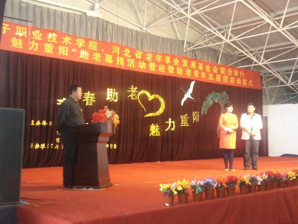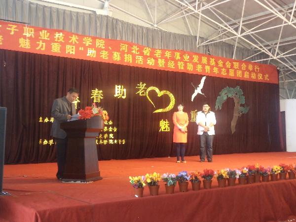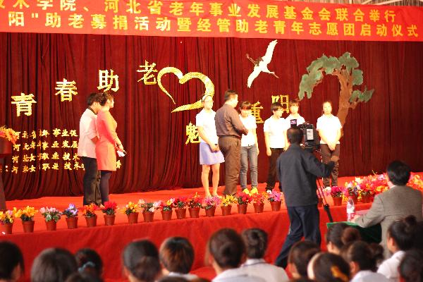 啟動儀式上,柳韶軍副院長首先為啟動儀式致辭,代表學院領導向所有的老年朋友致以衷心的祝愿和崇高的敬意。省老年事業促進會常務副會長、省老年事業發展基金會常務副理事長、秘書長孫鳴改發表了熱情洋溢的講話,并向我院五名特困家庭代表杜海燕、張沙、馬會娟、周博、劉紅濤各捐助了300元現金。姜文匯副會長向學院頒發了“敬老助老愛心單位”牌匾。中共河北省委老干部局原局長、省老年事業發展基金會理事長王惠來與學院交接助老工程募捐箱,并向經濟管理系助老志愿團授旗,標志著經濟管理系助老青年志愿團正式成立。儀式上,我院領導和在場師生共同為此次活動捐款2200余元。