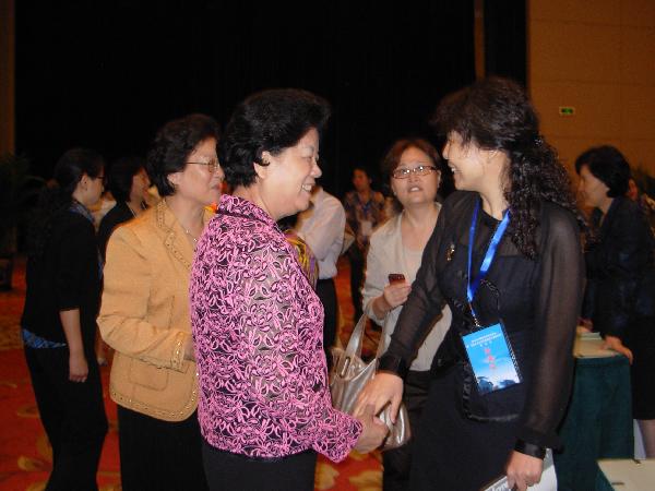 全國人大常委會副委員長、全國婦聯主席陳至立(左二)與王靜書記親切交談