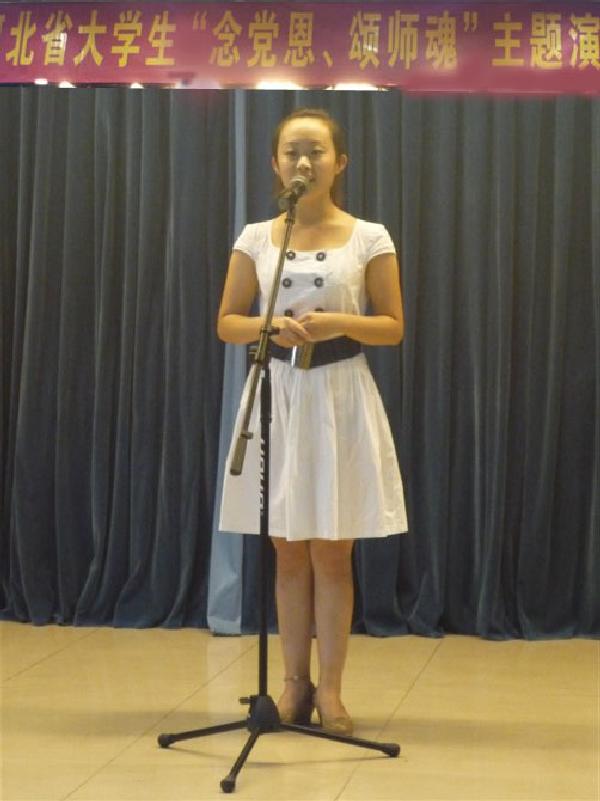 2012年6月28日,河北省大學生“念黨恩 頌師魂”主題演講比賽在河北省鐵道大學舉行,此次比賽有河北省教育工委、省教育廳主辦,來自全省近40所高校參加了比賽,我系人力資源管理專業霍景景同學代表我院參加,并以突出的表現獲得??平M二等獎。