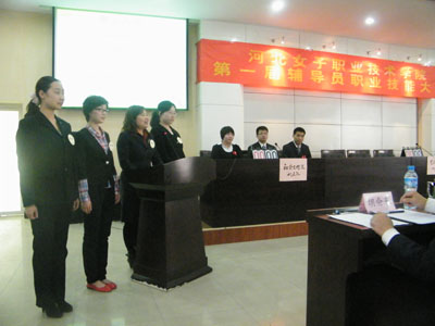 4月14日下午我院在報告廳舉辦“河北女子職業技術學院第一屆輔導員技能大賽”,我系推薦任雁、魏娟娟、張坡三名輔導員老師組隊參加。她們分別參加主題班會設計、班情熟知、情景案例分析、才藝展示、基礎知識問答五項內容的比賽。我系推薦的三名輔導員在各個環節的比賽中表現突出,對所出題目對答如流,對學生日常管理表現出嫻熟的業務技能,表現出了輔導員在處理學生日常事務時練就的過硬的基本功、較高的政策理論水平和分析解決問題的能力。我系三名輔導員在參加班情熟知、情景案例分析、才藝展示、基礎知識問答的單項比賽中取得第一名,在主題班會設計環節取得第二名的好成績,最終以171分的好成績獲得團體第一名。本屆輔導員職業技能大賽是學院“愛崗敬業 創先爭優”輔導員工作大比武活動的深化和拓展,也是各系各團總支學生教育管理成績的具體體現。本屆比賽的優秀選手我系的張坡、魏娟娟老師將代表學院參加5月中旬河北省第一屆高校輔導員職業技能大賽。