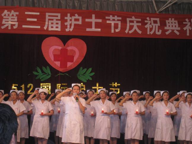 5月13日下午,河北女子職業(yè)技術(shù)學(xué)院護(hù)理專(zhuān)業(yè)在食堂四樓舉辦了以“與愛(ài)同行、健康快樂(lè)、展示護(hù)士風(fēng)采”為主題的“5.12”國(guó)際護(hù)士節(jié)慶祝活動(dòng)。參加此次慶祝活動(dòng)的有學(xué)校領(lǐng)導(dǎo)、學(xué)生實(shí)習(xí)醫(yī)院的專(zhuān)家、護(hù)理專(zhuān)業(yè)的教師以及護(hù)理專(zhuān)業(yè)在校學(xué)生。柳韶軍副院長(zhǎng)首先致辭,他向全體護(hù)理專(zhuān)業(yè)師生表示節(jié)日的祝賀,對(duì)我院護(hù)理工作所取得的成績(jī)給予肯定,同時(shí)對(duì)我院今后的護(hù)理工作提出殷切希望和要求;然后由護(hù)理專(zhuān)業(yè)教師對(duì)2010級(jí)學(xué)生進(jìn)行授帽,在神圣的護(hù)士授帽儀式上,全體師生重溫護(hù)士誓詞:救死扶傷,無(wú)私奉獻(xiàn)。潔白的護(hù)士帽和火紅的紅燭讓南丁格爾精神熠熠放光。大會(huì)還表彰了在護(hù)理專(zhuān)業(yè)技能比賽中表現(xiàn)突出的班級(jí)和個(gè)人。最后護(hù)理專(zhuān)業(yè)的學(xué)生進(jìn)行了護(hù)理禮儀展示、無(wú)菌技術(shù)操作、心肺復(fù)蘇、穿脫隔離衣、青霉素皮試等表演。