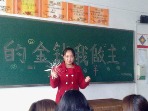 2010年11月30日,09級(jí)會(huì)計(jì)電算化四班在教學(xué)樓502舉辦了“我的金錢我做主”主題團(tuán)日活動(dòng),應(yīng)用技術(shù)系團(tuán)總支副書記鄭海英、組織部部長(zhǎng)郝澤賢、副部長(zhǎng)高霞霞等學(xué)生干部應(yīng)約參加了觀摩。本次團(tuán)日活動(dòng)通過號(hào)召同學(xué)們用最少的錢購(gòu)置自己覺得最有利用價(jià)值的東西加上一些廢品,然后親手設(shè)計(jì)并制作出自己本小組的紀(jì)念物品,然后讓大家培養(yǎng)勤儉節(jié)約的好品質(zhì)。此次活動(dòng)按宿舍分組,每六個(gè)人一組,每組分發(fā)兩元錢,利用課余時(shí)間去購(gòu)買自己本組覺得最具利用價(jià)值的東西,并準(zhǔn)備好本組需要用的廢品,在團(tuán)日活動(dòng)的時(shí)間制作出自己的作品。
