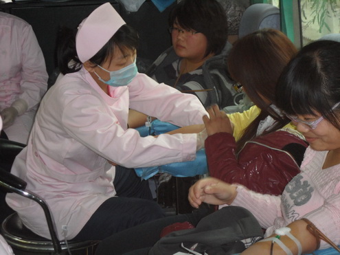 2010年10月26日,我院以“青春涌動 血脈相連”為主題的義務獻血活動在學院圖書館門前舉行,2010級新生積極參加本次義務獻血活動。