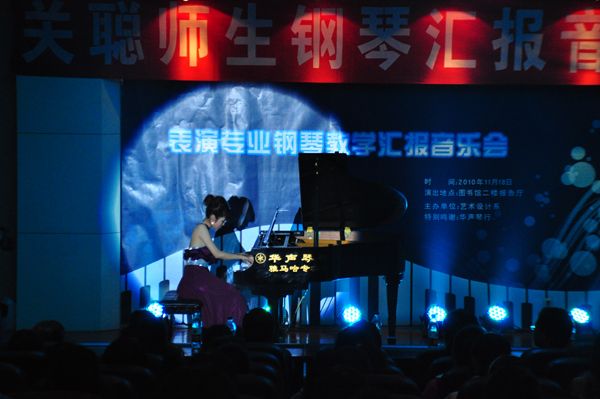 11月18日晚7時,表演專業教學成果匯報展演——關聰師生鋼琴匯報音樂會在學院報告廳成功舉行!本次教學匯報音樂會是表演專業本年度的第五次展演。之前,表演專業教研室主任胡芳副教授等4位教師已成功的舉辦了四場專業教學匯報演出。并取得了圓滿成功,受到了學院領導和各系部領導、教師以及觀看演出的學生的一致好評。