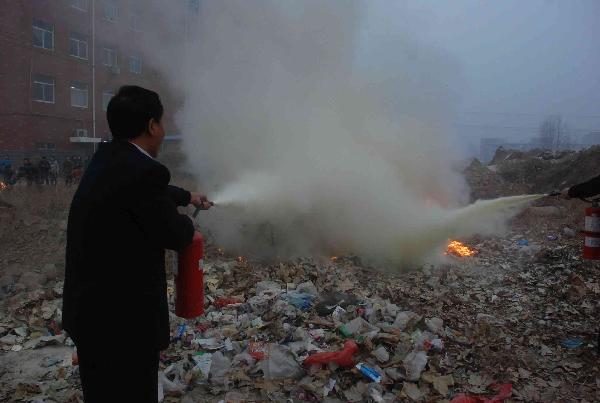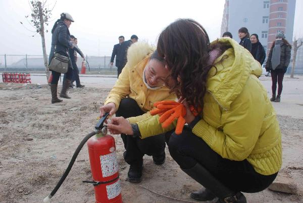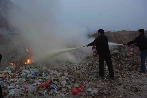 石家莊家安防火中心的教官利用多媒體課件對與會人員進行了生動的消防知識培訓。最后在南校區模擬火場,與會人員親自動手學會了使用滅火器滅火的方法。
