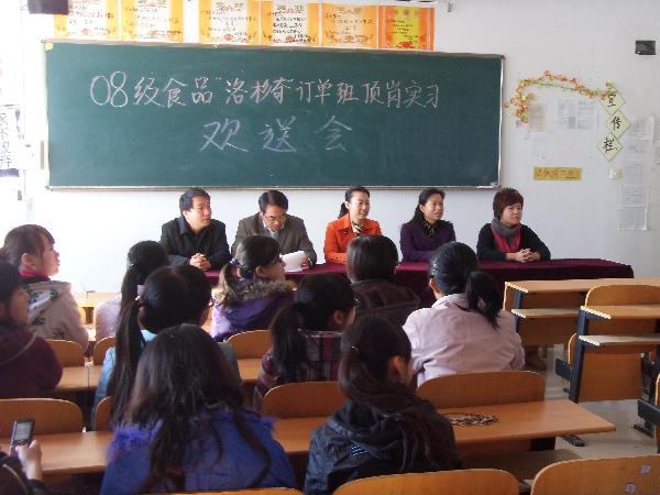 此次08級食品“洛杉奇”訂單班頂崗實習歡送會取得了圓滿的成功,它為頂崗實習的同學指明了以后在工作和學習努力的方向,作為河北省會城市的一家大型食品加工有限公司,應用技術系與洛杉奇食品有限公司的合作為學生的就業搭建了綠色車道,為我系會計電算化、金融等專業的畢業生頂崗實習起到了一個模范帶頭的作用!我系在座的每一位教師為各位實習的同學也送上了美好的祝福!